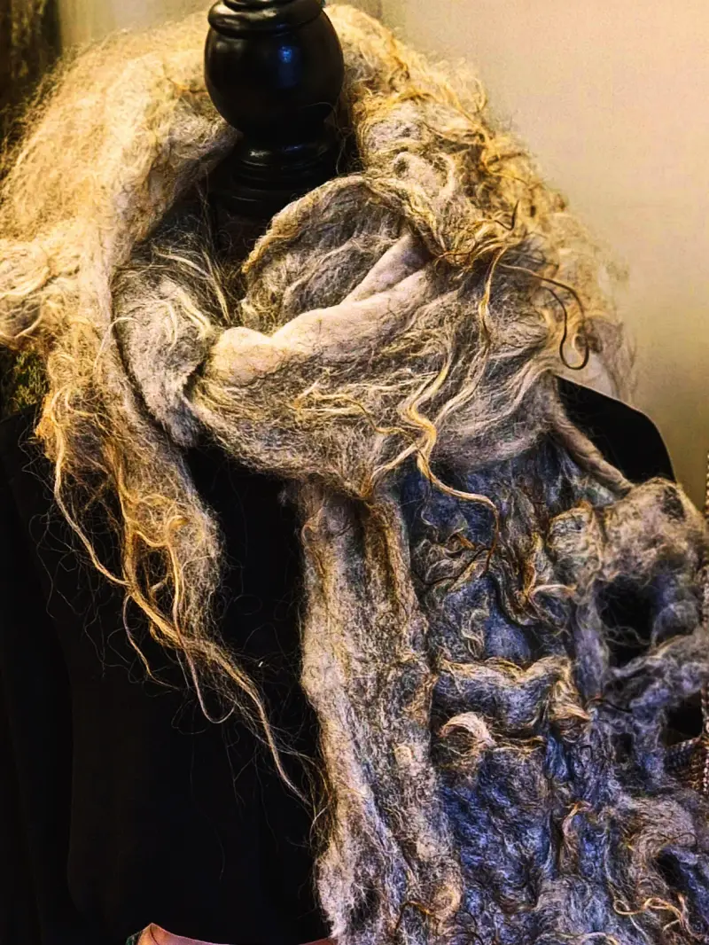 En wat is vakmanschap zonder groot formaat? Alles. Het is eerlijk. Het is oprecht. Het is groots in zijn eenvoud. Je hoeft niet groot te werken om groots te zijn. Een perfect gevilt sjaaltje, een buideltje waar elke vezel op zijn plek ligt, een lapje dat de hele geschiedenis van de wol en de maker in zich draagt – dat is grootsheid.